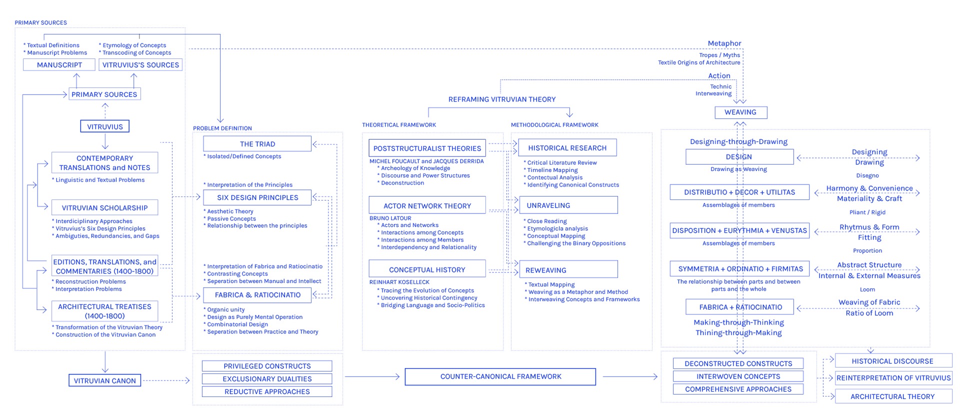 Vitruvian Loom reinterprets the foundations of Western architectural theory by placing weaving—its material practices, procedural logics, and embodied knowledge—at the center of architectural thought. Moving beyond canonical readings of Vitruvius, the book argues that architecture’s disciplinary origins have long been shaped by an unacknowledged tension between fabrica (making) and ratiōcīnātiō (thinking). Through a close rereading of De Architectura alongside ancient craft histories, textile technologies, and contemporary theory, the project reveals how architectural knowledge has been systematically abstracted from embodied labor, material intelligence, and craft ecologies.
